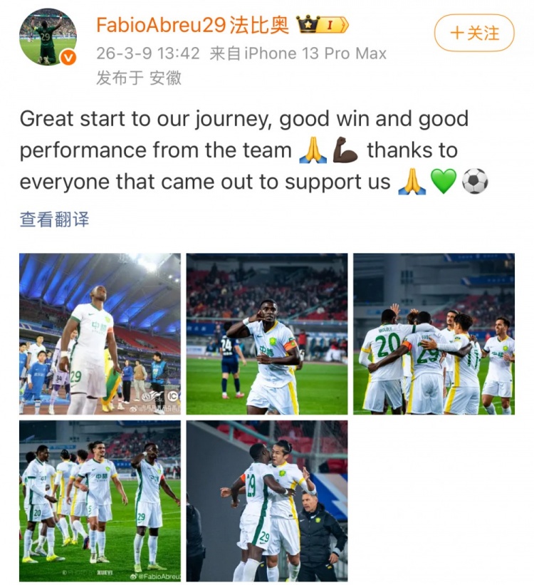 今日法比奥更新社媒,晒出比赛照庆祝胜利,文案写道:“新赛季起了个好头,球队表现非常精彩,胜利十分有意义。感谢莅临现场支持我们的球迷们。”