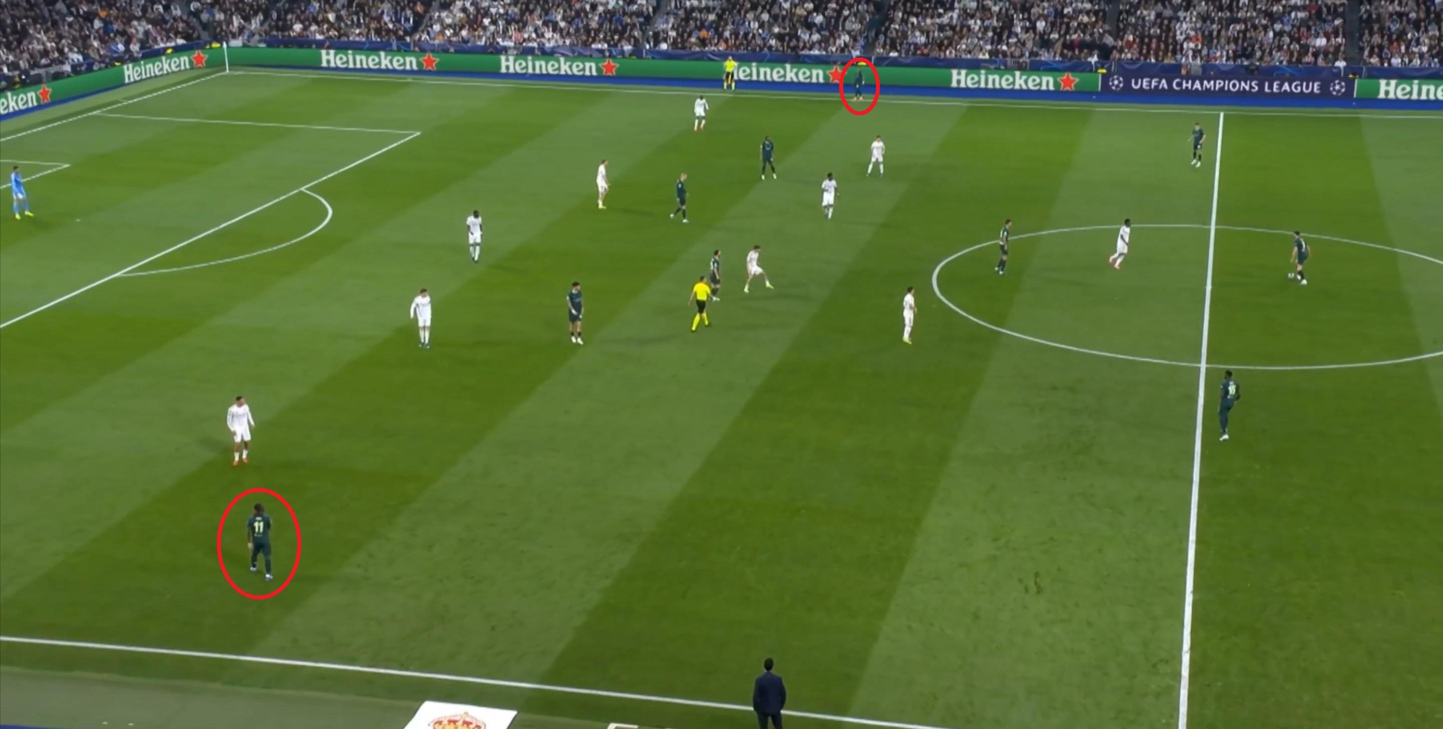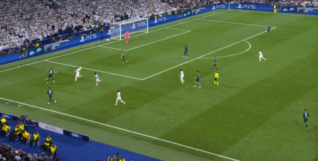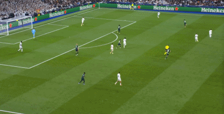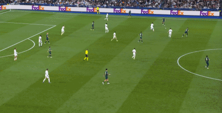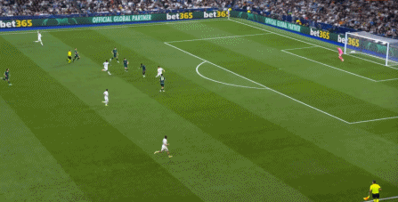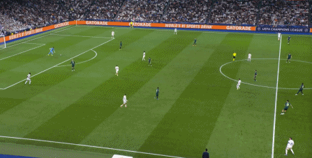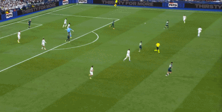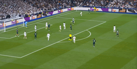 所以在下半场,皇马的表现依然稳健,还是通过人数足够的防守来构筑基础,在此之上进行次数有限,但威胁不小的反击,效果依然不错: