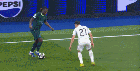 就像比赛第19分钟这次进攻,曼城从右至左,和皇马在中路进行球权争夺的时候,是贝尔纳多-席尔瓦打出了一脚远射: